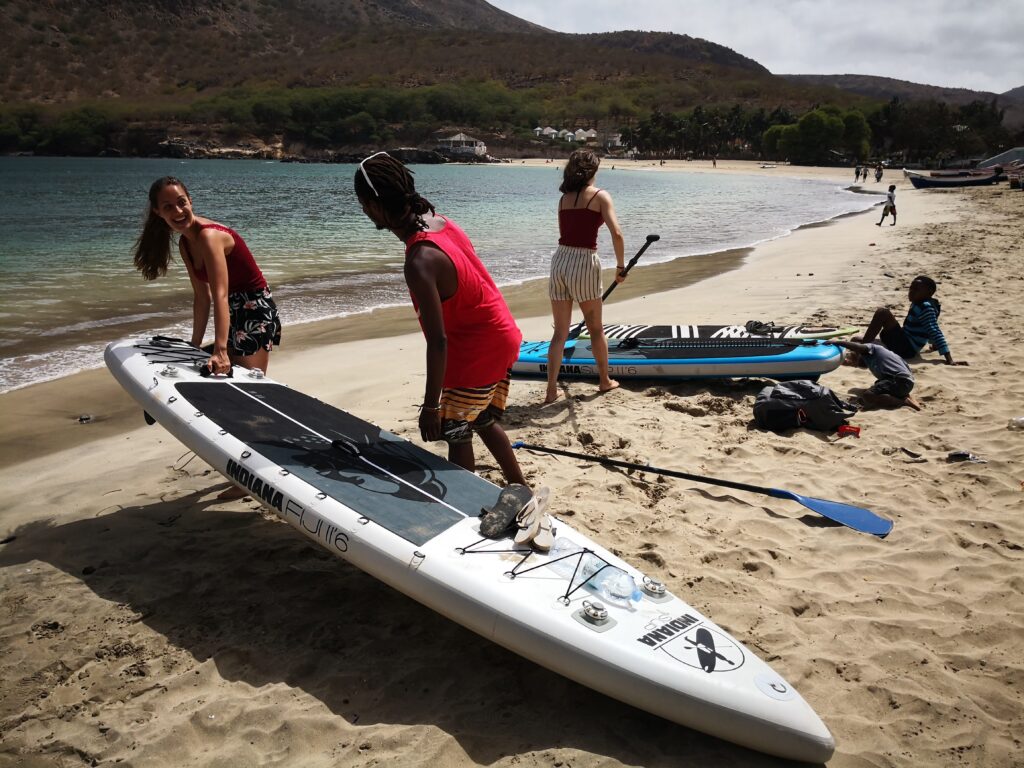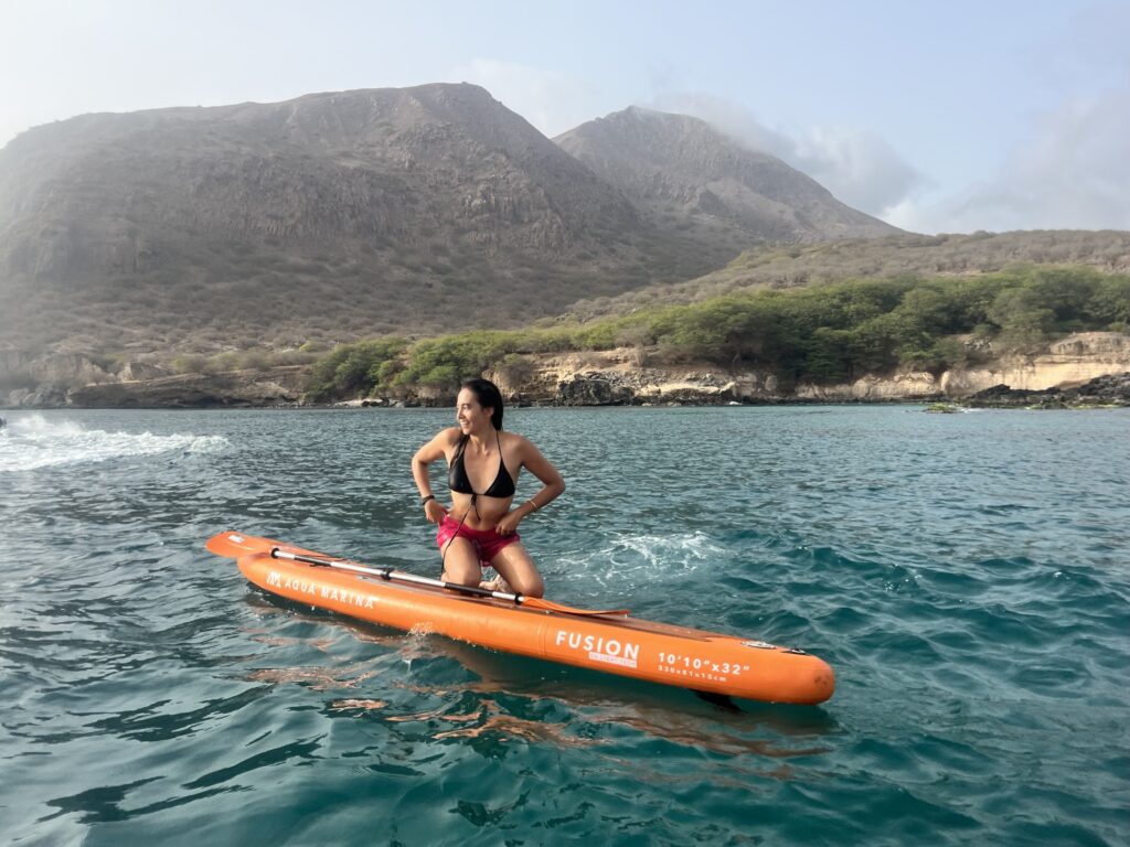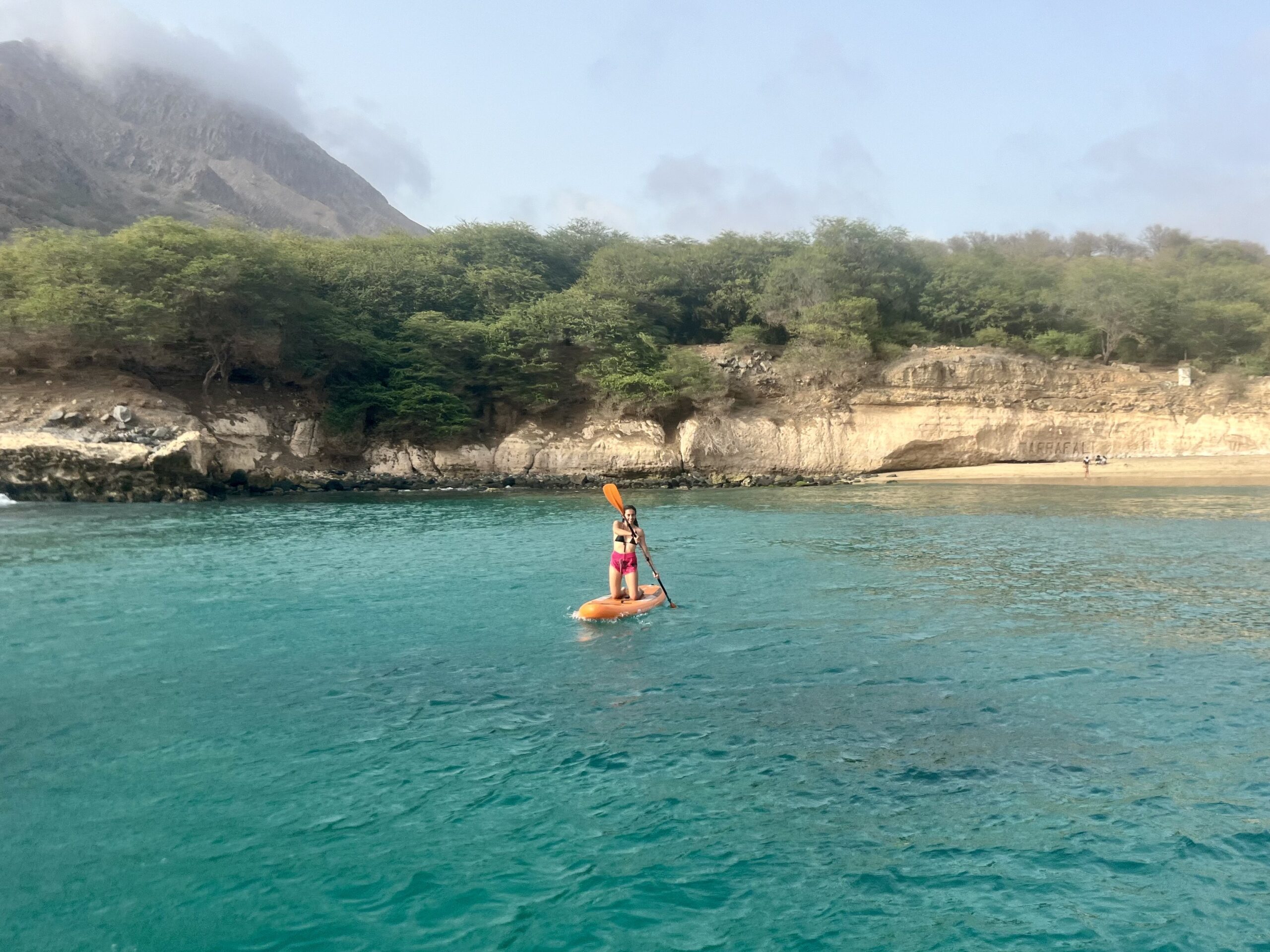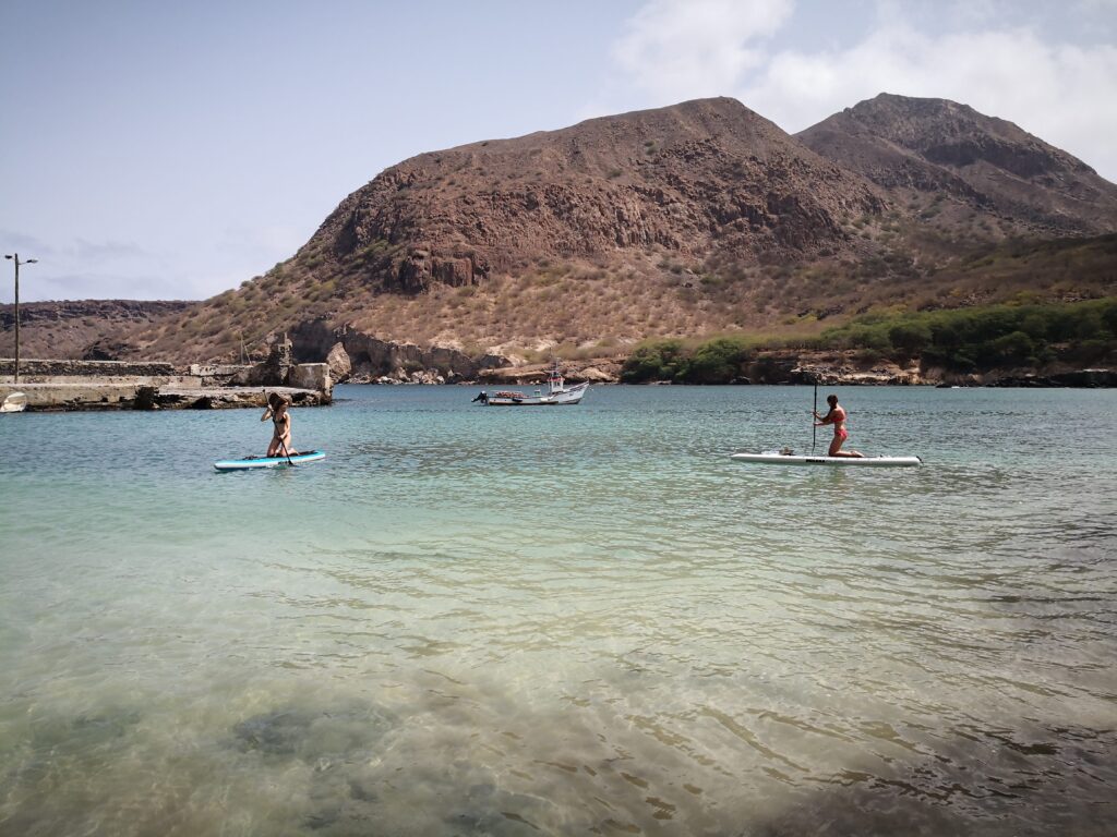 Explore the stunning coastline of Tarrafal Bay with this fun and beginner-friendly 1-hour paddleboarding experience. After a quick introduction from your instructor, you'll head out onto the calm, crystal-clear waters for a relaxing paddle along the shore. Enjoy views of the unique coastal landscape, glide past hidden caves, and keep an eye out for marine life!